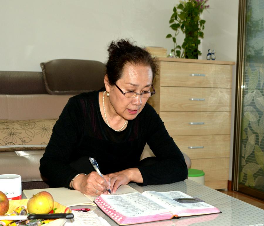 我是信徒,我不能每天在病痛中唉哼,我不能只是在阳台上看着外边的风景发呆。祷告、读经、每天抄写圣经是我的必修课,特别是抄写圣经。有时甚至忘了吃饭,越写越爱写,越写越有力量;边写边灵修,神的话在耳边、神的话在心间、神的话是那么的甘甜。在神的圣言中,我得到了灵里的食粮、我得到了抚慰。伟大奇妙的神,感谢你对我保守医治。在病重的时候神医治我、软弱无助的时候,我感觉到了,祂慈爱的手扶摸着我;患病的这些年,我感觉到了在基督里的爱,教会的弟兄姊妹多次不辞辛苦来我家探望,为我祷告,给我安慰,我非常感恩、非常感谢。