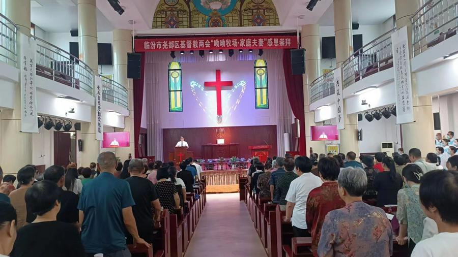 9月9日上午,山西省临汾市尧都区城区基督教堂里,洋溢着一派温馨浪漫的浓厚氛围。一对对夫妻陆续来到教会,参加了该教会举办的“呦呦牧场”家庭夫妻会。堂内座无虚席,一首诗歌《盟约》回荡着:“我以永远的爱爱你,我以慈爱吸引你,聘你为我永远的妻,永以慈爱诚实待你,哦我愿夺得主的心,用我注视的眼睛,我的心如禁闭的井,新陈佳果为你存留……”听着诗歌,不少人眼含泪花,无不为神圣的爱而感动。活动现场邀请了太原市基督教会家园牧场的夫妻分享感恩见证,使大家受益匪浅。
