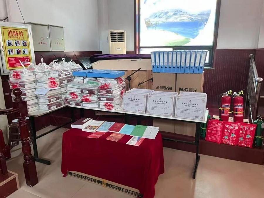 最后还举行了“以堂带点”颁证发放仪式,共为10个回归点发放了牌照,使他们有了合法“身份”。还发放了档案盒和政策法规、传统文化 、二十大精神 、防范异端邪教、安全消防手册等内容宣传材料。还为每个点配备了灭火器和灭火毯等消防器材。