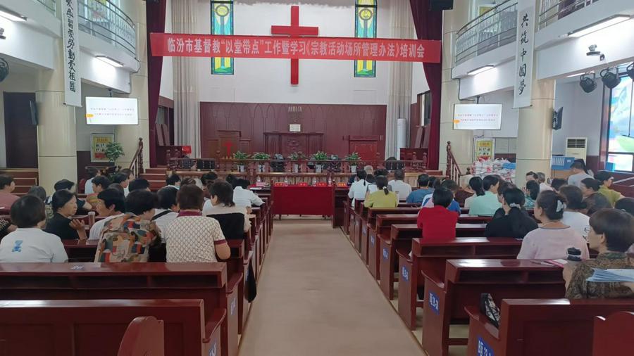 9月8日上午,山西省临汾市基督教两会在尧都区城区教堂举办了“以堂带点”推进工作暨《宗教活动场所管理办法》学习培训会,两会常委、各片区、场所负责人、以堂带点负责人、教职人员100余人参加会议。市、区主管部门领导出席会议。