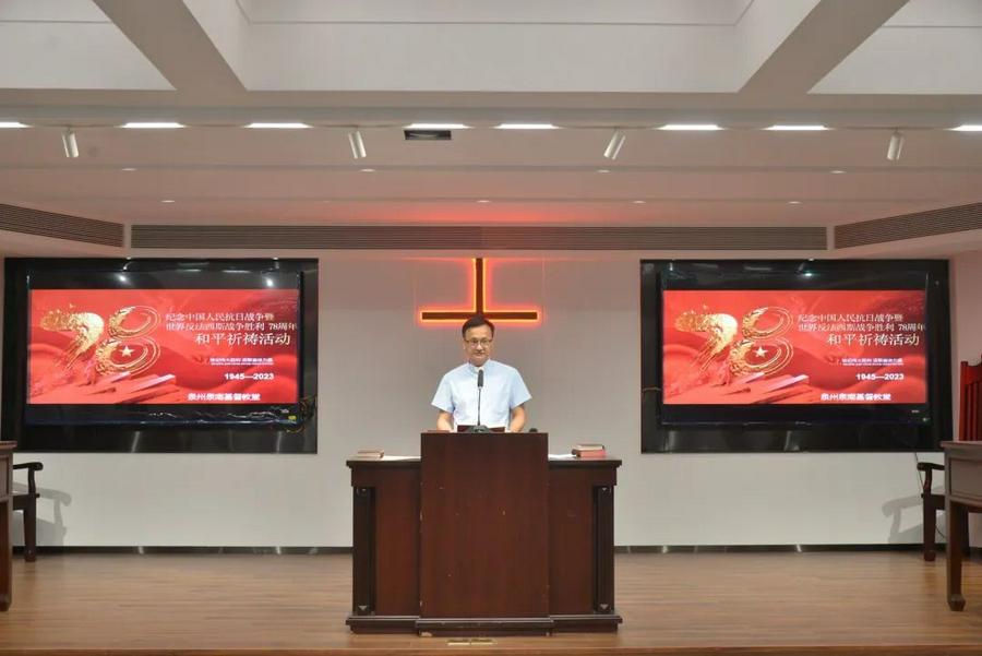 2023年9月3日是中国人民取得抗日战争暨世界反法西斯战争胜利78周年的纪念日。为积极响应中国宗教界和平委员会的倡议,弘扬基督教界爱国爱教传统,福建省泉州市泉南基督教堂组织开展了纪念中国人民抗日战争暨世界反法西斯战争胜利78周年和平祈祷活动。