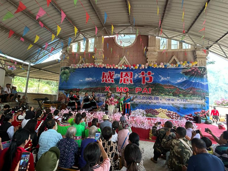 2023年9月9日、10日,云南保山市隆阳区潞江镇赛林教会迎来一年一度的秋收感恩庆典,周边十多个教堂近800名信徒,共聚一堂,庆祝丰收,称颂主恩。