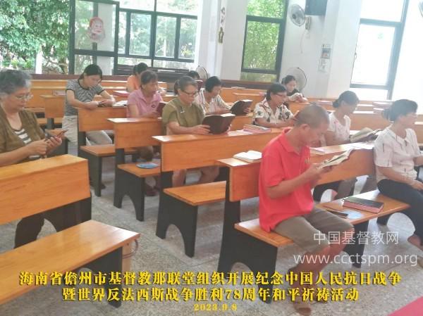 9月8日,为纪念中国人民取得抗日战争暨世界反法西斯战争胜利 78 周年,儋州市各基督教堂点积极响应中国宗教界和平委员会的倡议,组织举行“纪念中国人民抗日战争暨世界反法西斯战争胜利 78 周年和平祈祷”活动。