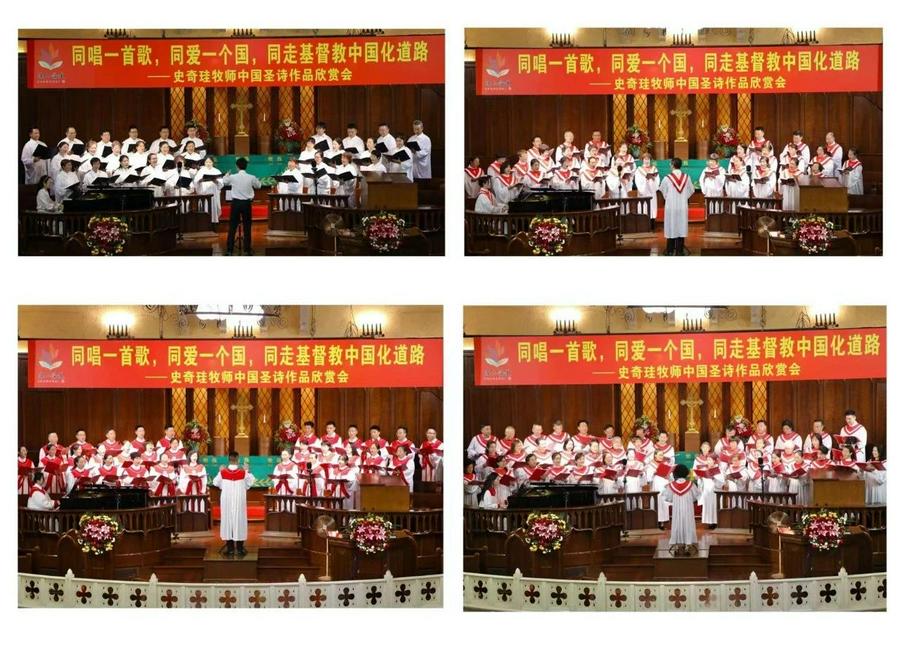 活动中,黄浦区、浦东新区、普陀区三区共四个唱诗班先后演绎了十三首由史奇珪牧师参与作词作曲的中国圣诗。史牧师的这些中国圣诗作品在中式音乐元素和中华优秀文化的表现形式下,脍炙人口、优美和谐,引发了观众来宾跟着音乐一同深情吟唱。最后,全场同声高唱《求主福佑中华歌》,为本次活动画下圆满的句号。