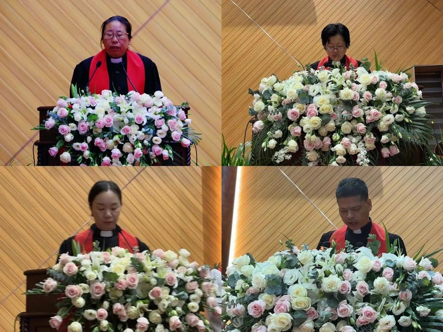 献堂感恩崇拜由童明芳牧师主礼,陆彩红牧师祷告,胡慧凤牧师颂读启应礼文,洪天凑牧师为国家、人民、教会、朱家角颂恩堂代祷。