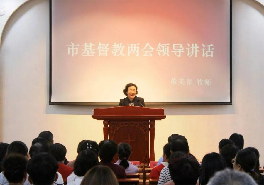 董美琴主任在讲话中回顾了义工培训班走过的三十一年历程,并结合习近平总书记提出的新时代宗教工作的新思路,对培训班和青岛教会的未来发展提出四点要求: