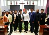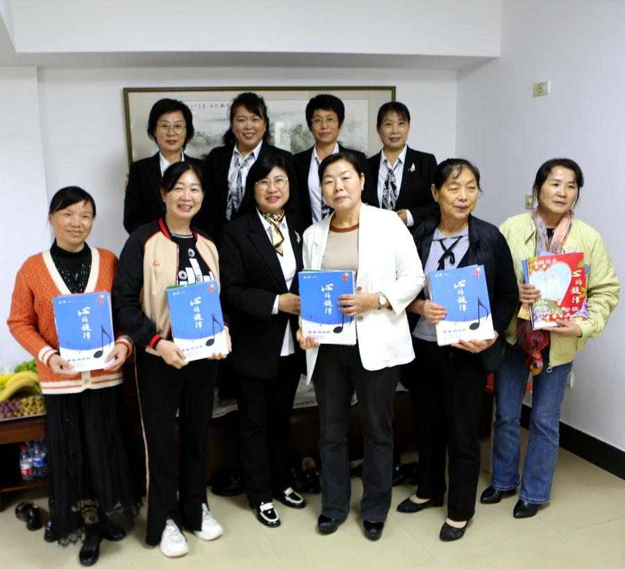 侯牧师和同工分享了在教会管理、音乐事工、青年团契各方面的经验,并向参访的各位同工赠送了由她作词的《心的旋律——赞美神诗歌》集一至五册。大家高兴地和候牧师合影留念。