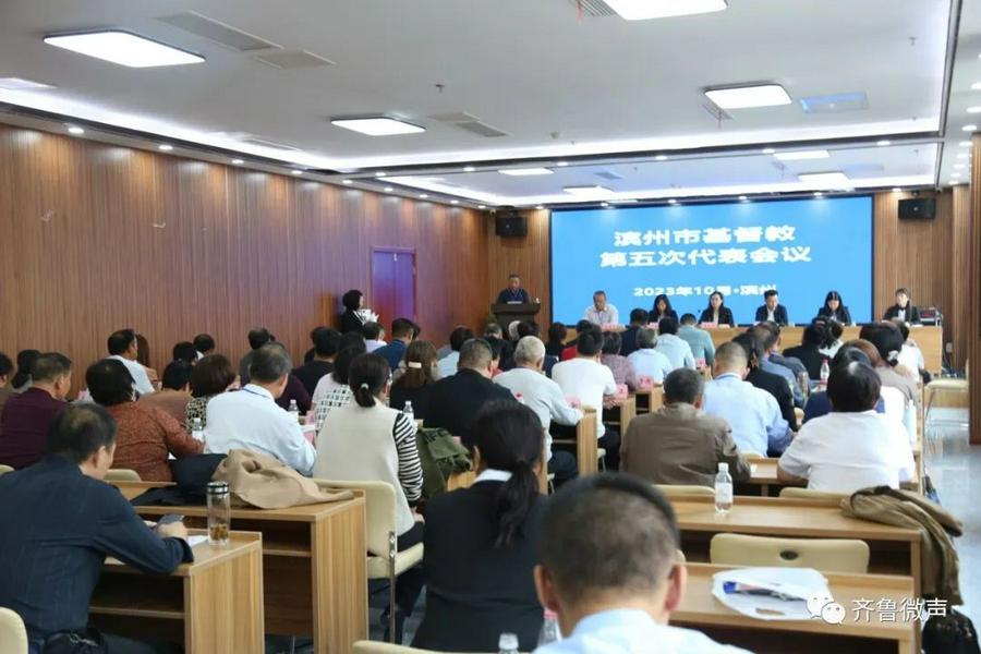 10月17日,山东省滨州市基督教第五次代表会在滨州市滨城区召开,滨州市委统战部分管日常工作的副部长、市民宗局田道军局长出席会议并讲话,市委统战部许立华副部长、市委统战部三级调研员张援参加会议,省基督教协会副会长王孟坤牧师到会祝贺并致辞,来自全市的信徒代表67人参加会议。