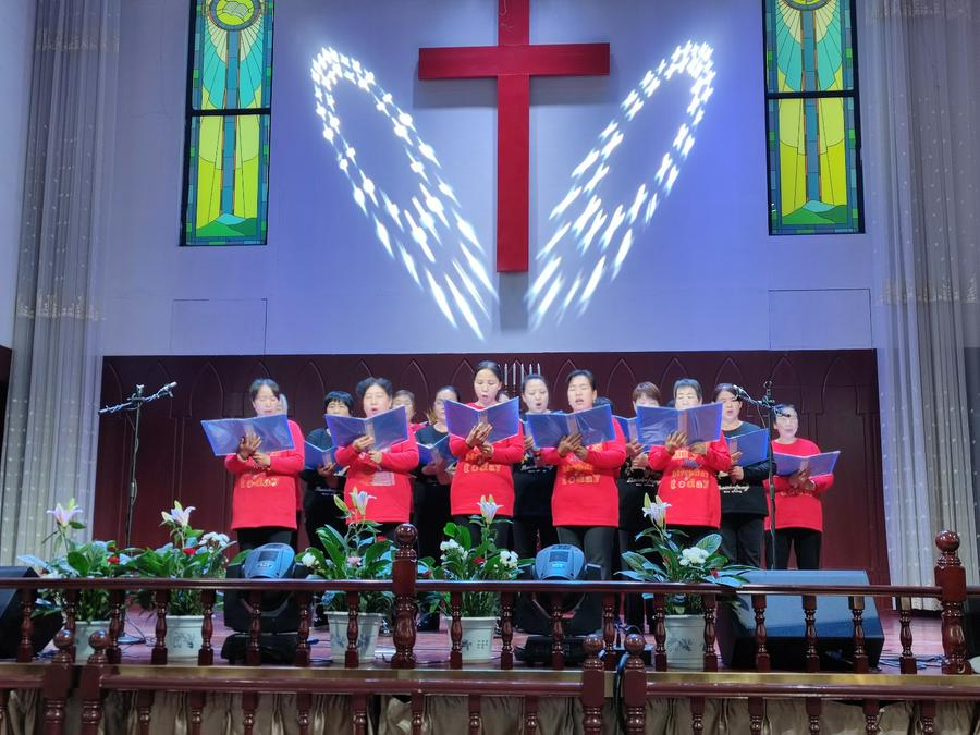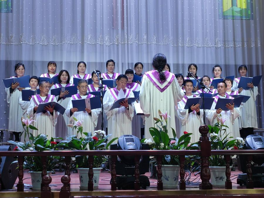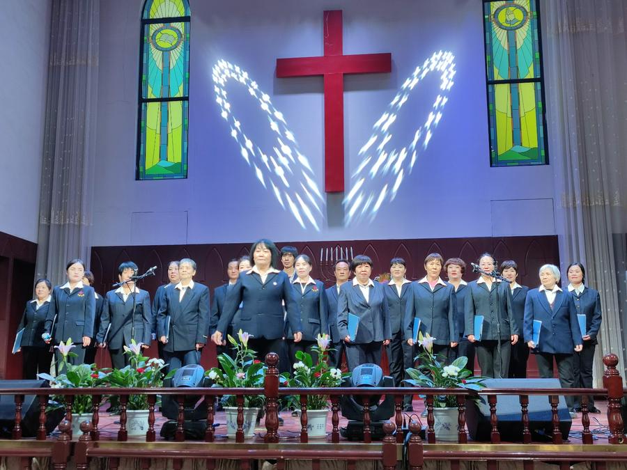 四、教会成长时期(砥砺前行,兴旺福音):以马内利诗班献唱《使命》《中国心》;一牧区献唱《心愿》《我爱中国教会歌》;四牧区献唱《我愿为你去》《宣教的中国》;六牧区献唱《圣灵的能力》《我祝愿神的仆人平平安安》。