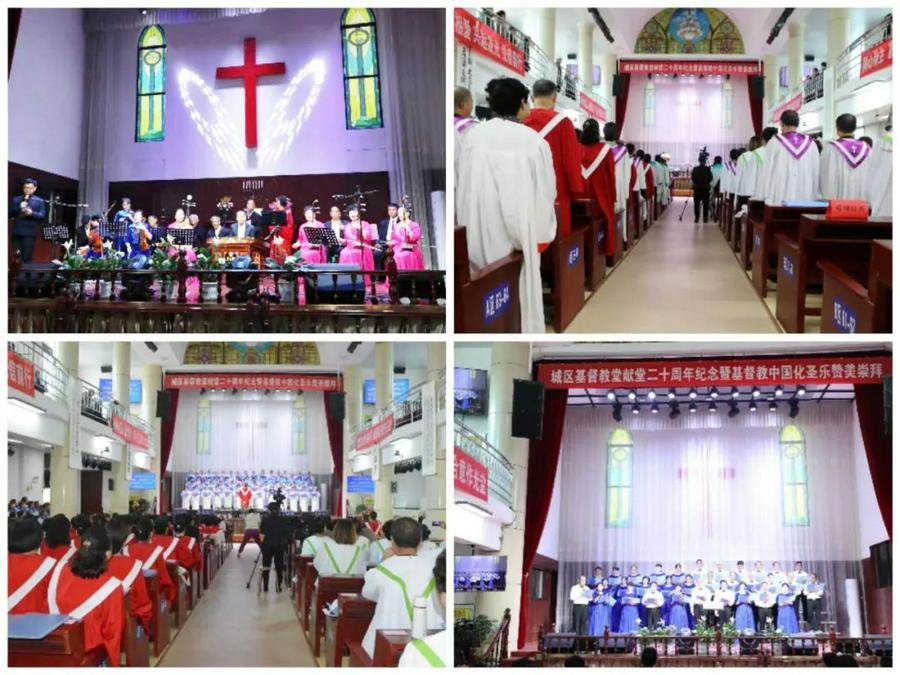城区教堂负责人陈丽长老作了二十周年总结报告,回顾了历史,总结了工作,呈现了数据,表达了感恩,展望了前路;呼吁全体信徒领受呼召,承接使命,继续持守初心,共同一路携行,在当代镌刻福音的新见证,在新时代续写基督教的美好传统。城区各片、各团契以舞蹈、见证、朗诵、合唱、快板及中国化乐器合奏等形式献上感恩,穿插的见证也感动、激励着大家重拾热情之火。
