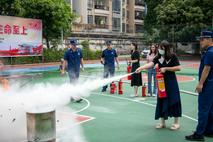 此后大家进行了紧急疏散实战演练,纷纷捂着口鼻在引导员指导下有序撤离。还来到室外,在消防专业人员的指导下,逐一进行灭火器实际操作演练,尽管学了理论,但操作起来,有的还不十分到位,消防人员进行了耐心指导。