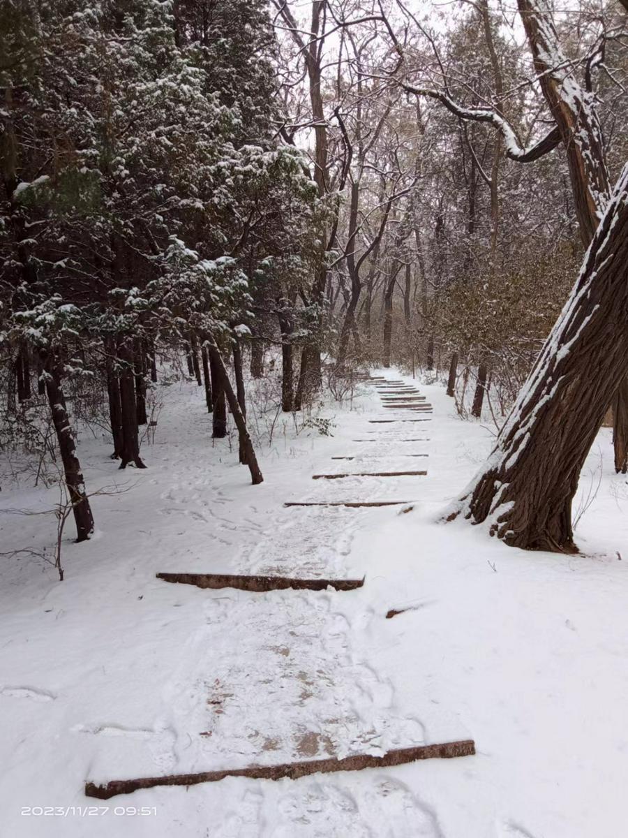 曲径通幽踏雪游,行行脚印君已来。