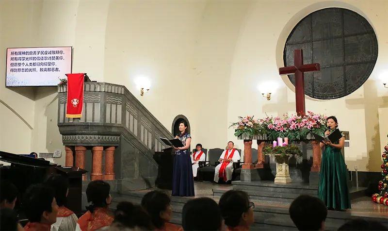 圣乐崇拜在管风琴、古筝、二胡、陶笛完美配搭伴奏,中国传统曲调赞美诗《耶稣美名歌》的歌声中拉开序幕,呈现了以中国古典文学和音乐为基调的圣乐作品共14首之多。