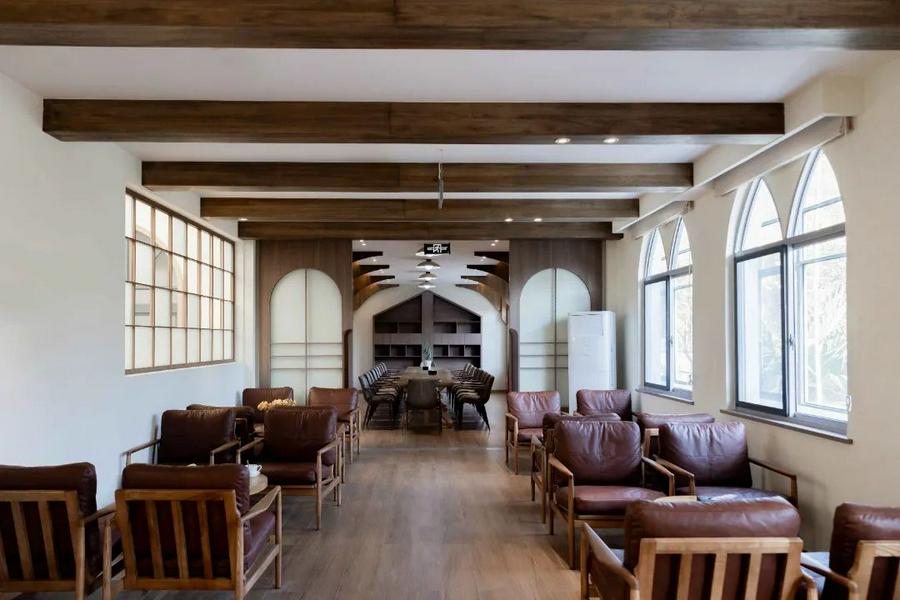 新图书馆分为两层,一层主要提供图书借阅,二层设计了阅览室和咖啡厅。图书馆总面积为700余平方米,整体宏伟大气、稳重严谨,典藏云集、阵阵墨香。位于江苏神学院图书馆二楼的阅览室和咖啡厅,占地面积280余平方米,开放78个座位,整体设计复古文艺、精致优雅。