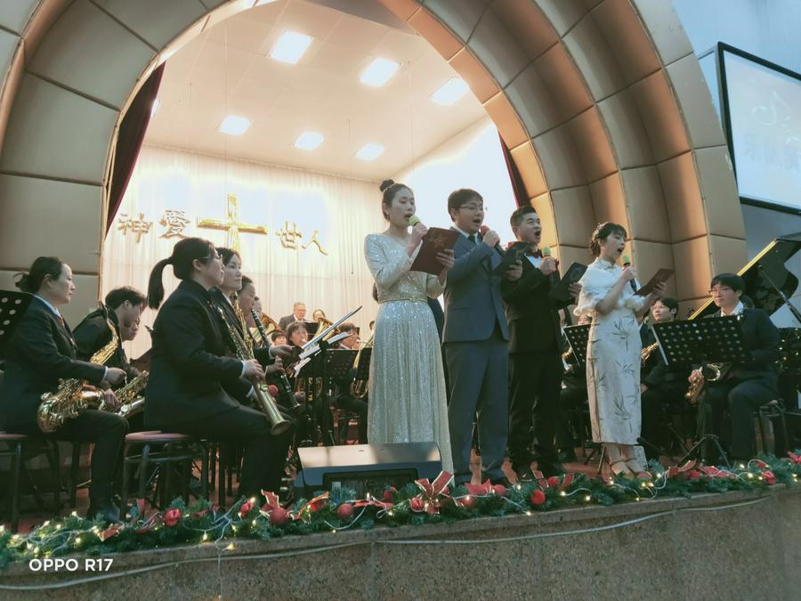 晚会由青年标竿赞美团拉开序幕,瞬间点燃了会场赞美主的热情,现场歌声,掌声回响不绝。福音堂铜管乐队和圣诗班献上圣乐诗歌,各种节目精彩纷呈,彰显出普天同庆欢庆圣诞的喜庆氛围。圣诞庆典上,舞蹈充满轻快动感,令人回味无穷;歌声优美,朝气蓬勃,富有年轻活力;圣剧扣人心弦,催人泪下。