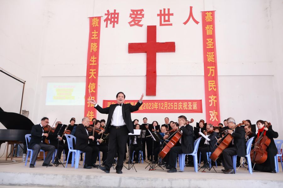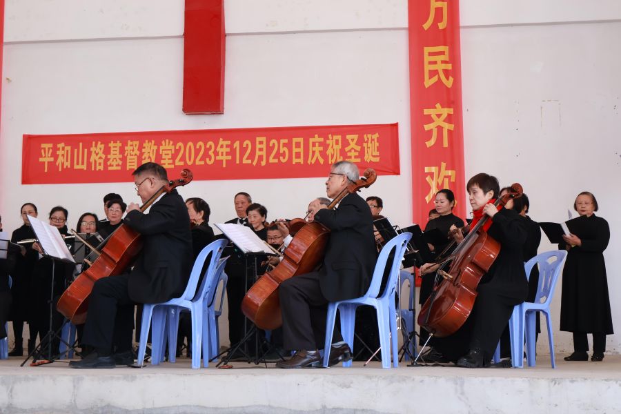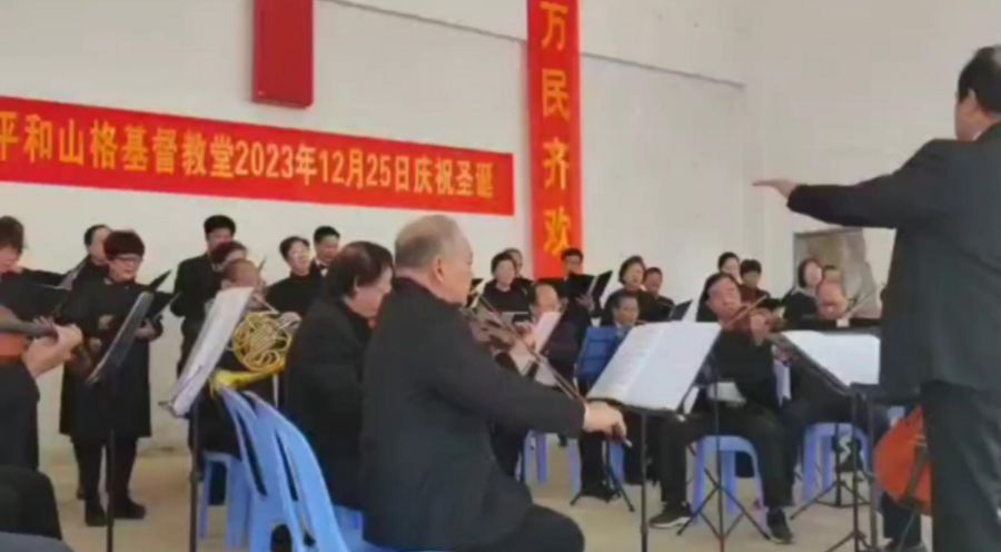 12月25日圣诞节一大清早,福建省厦门市基督徒圣乐团一行近50人在李冰娜团长、指挥王圣生弟兄的带领下,乘一辆大巴车,从厦门东南亚大酒店出发,来到漳州市平和山区的山格教会,参加该堂2023年圣诞感恩赞美会。