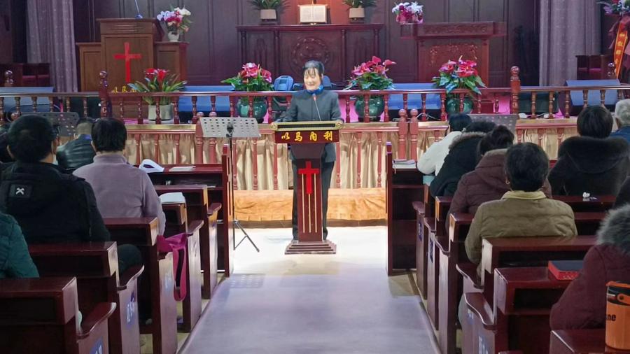 此后杨森林牧师为国家政府政策、社会民生、文化思想,卫生安全、医疗等代祷;李秀平传道为世界和平代祷,求神折弓断枪,止息战争;靳月好长老为教会专心侍奉、过信心盼望的生活代祷。李泽荣姊妹分享了自己传承信仰、接替93岁婆婆侍奉活动接待点以及自己孝敬老人的美好见证,得到了全场阵阵掌声。