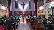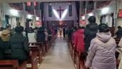 七点三十分,主持人耿福琴牧师以诗篇148篇的经文宣召。赞美的歌声拉开了第一阶段的“专心侍奉”的崇拜。《主赐的福如春雨》《祈祷世界和平》《我以祷告来到你面前》歌声唱响,人们心情澎湃。段燕青牧师宣读了以赛亚书61章10节—62章3节和路加福音2章25—38节的经文。会众歌诗《我以祷告来到你面前》;耿福琴牧师献上代祷。