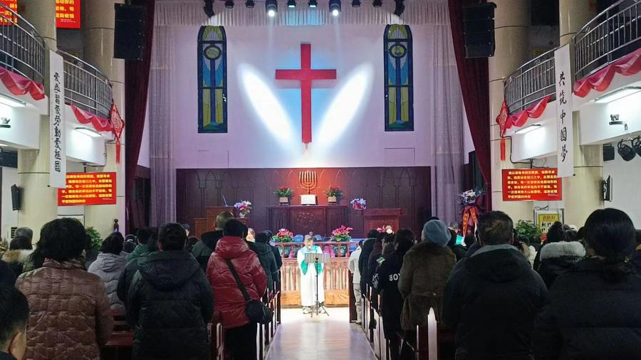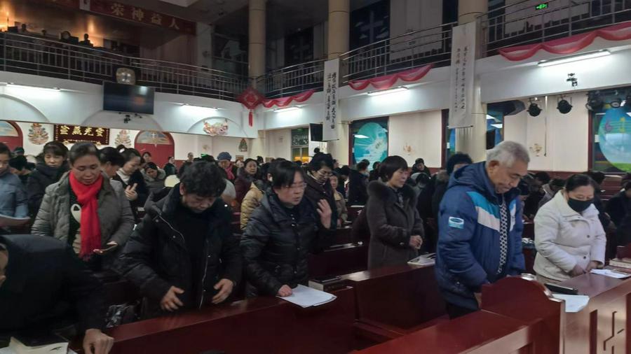 当天黄昏时,临汾古城街头游人如织,华灯初上,城市到处洋溢着节日的欢乐祥和气氛。处于城市中心的基督教堂欢庆圣诞的气氛犹存。彩灯璀璨,流光溢彩,许多爱主的人甘愿舍弃繁华俗世的喧嚣,来到这里享受与神亲近的美好时光。大家一起回顾上帝过去一年的带领,数算神恩,反思自己的不足和亏欠,希望与神有更亲密交通,新年立心志,活出新生命,迎接大复兴。