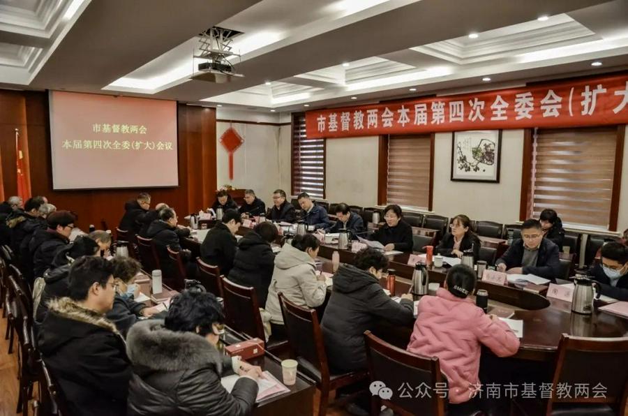 2024年1月26日,山东省济南市基督教两会本届第四次委员(扩大)会议在驻地会议室召开。会议听取、审议通过了市基督教三自爱国运动委员会主任赵克玉作的《济南市基督教两会2023年工作报告》。
