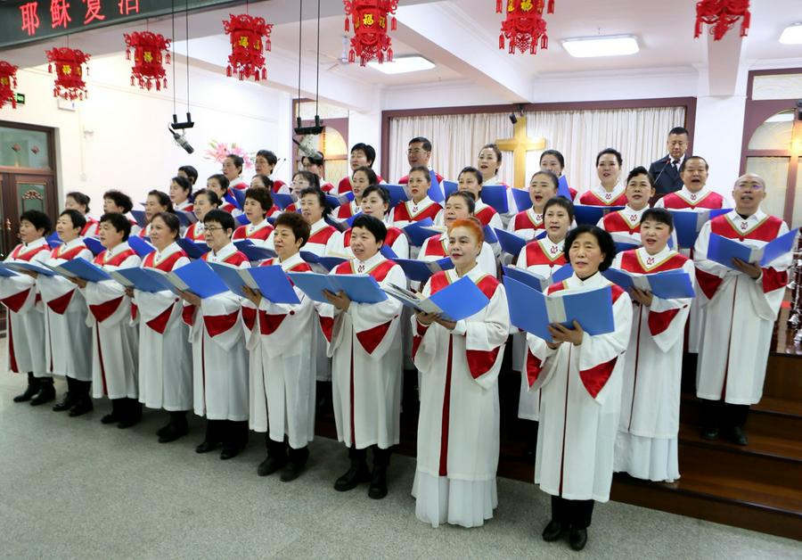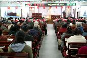 在经过了受难周的连续聚会后,今天,绿化街教会的教牧同工和弟兄姊妹欢聚在神的圣殿,纪念主的复活、赞美三一的独一真神。教堂主堂从一楼到四楼坐满了前来聚会的肢体,大家随着诗班领唱的弟兄姊妹赞美讴歌。