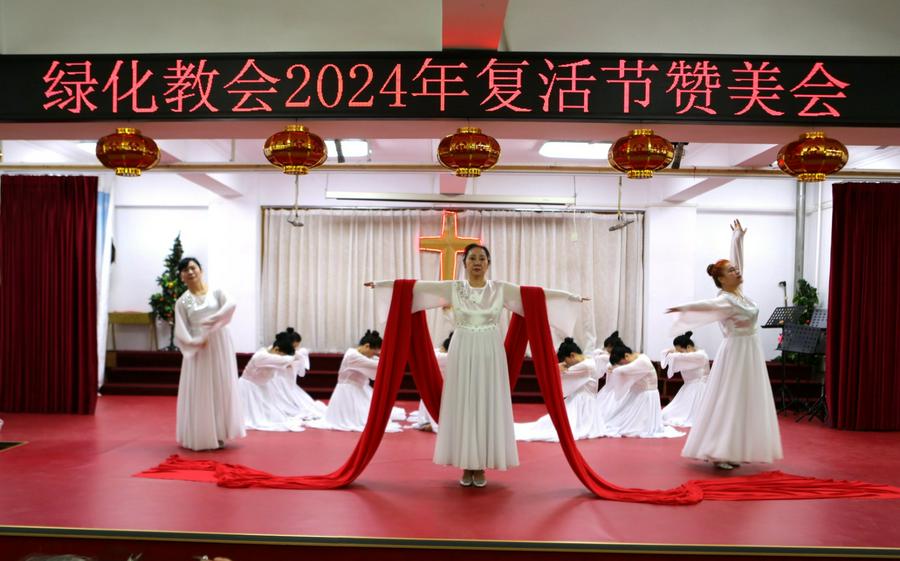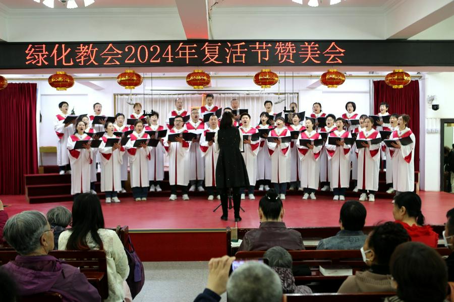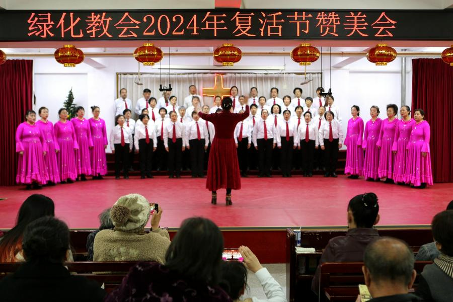“复活喜讯,忽闻主呼唤。仰见主慈容,急返门徒间,喜讯乐传送。”在《复活喜讯》的赞美声中,2024年3月31日主日上午和傍晚,辽宁省鞍山市绿化街基督教会的信众迎来了2024年度的复活节赞美聚会。