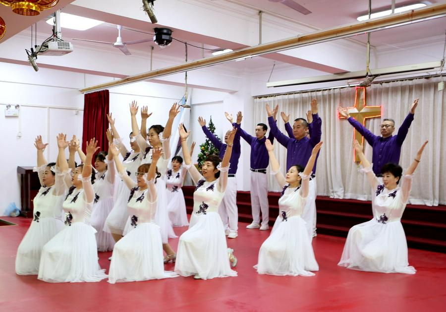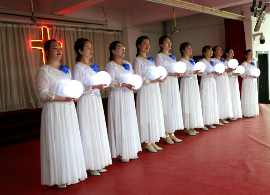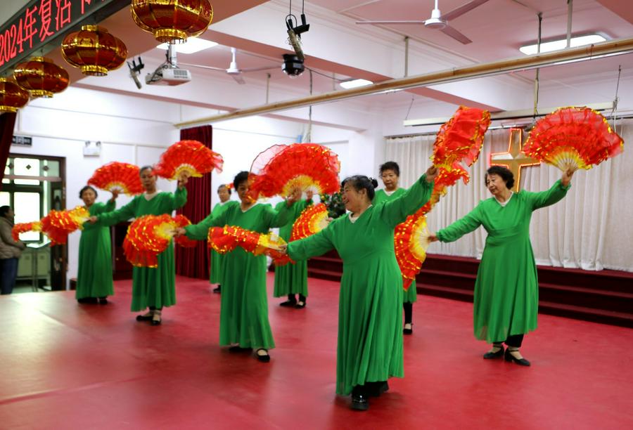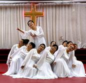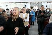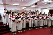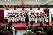 袁明牧师证道结束后,陈宁宁牧师带领本堂各班组、团契,将精心预备的十九个节目献给恩主基督,庆祝主复活。圣诗班B班的舞蹈《我是谁》首先登台;圣诗班A班的大合唱《赞美恩主由天降下》气势宏伟、歌声嘹亮;服务组姊妹的舞蹈《救赎》不仅服装别具一格而且舞姿优美;B诗班四位姊妹的诗朗诵《主复活了》,在配乐声中声情并茂地高声朗诵:“‘成了’是结束,也是开始,主是阿拉法,主是俄梅戛;主是首先的,主是末后的;主是初,主是终。我们颂赞慈悲的天父!称谢主的救恩与看顾!”当笔者听到由我为我所受洗的家乡教会创作的这首诗歌时,不禁热泪盈眶,感谢主!感谢圣灵的充满!三街口聚会点的三首大合唱《复活的荣耀》等是由老年弟兄姊妹献上的;手语舞《一年的路程》深得会众喜爱,而且还有聋人肢体在台下跟随一起赞美;教会管弦器乐合奏《复活喜讯歌》等乐声激昂、振奋人心;还有三十一中聚会点大合唱《哈利路亚主复活》等节目;最后“压轴”的是舞蹈《一粒麦子》,舞蹈栩栩如生展示了一粒麦子的入土到复活、丰收,告诉大家主复活、我们信他的也复活,要向下扎根、向上结果。