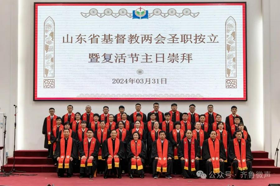 3月31日,正值基督教隆重的复活节,山东省基督教两会在临沂市基督教两会中心堂举行圣职按立典礼。