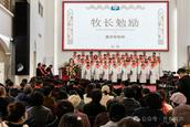 董美琴牧师代表省基督教两会对承接按立的牧师、长老劝勉与祝贺,要求新按立教牧人员高举爱国爱教旗帜,不断提高政治站位;坚持基督教中国化方向,加强神学思想建设;坚持全面从严治教,开展崇俭戒奢教育活动,做严于律己,正身垂范的新时代好牧人。