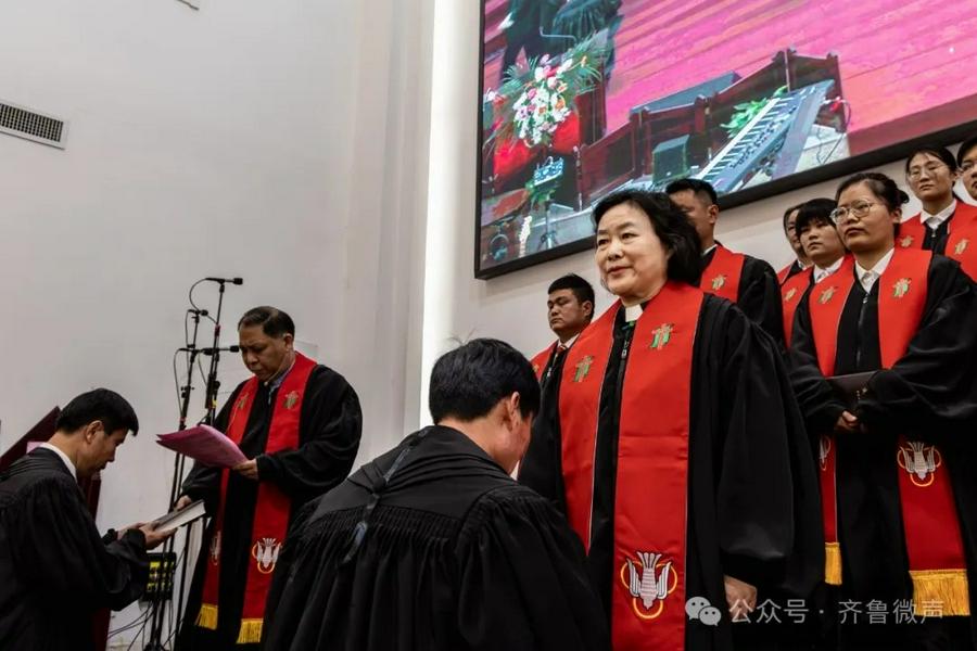 姜德德、郭永新、邵思思(女)、孟繁艳(女)、郭圣杰、王广玉(女)、孙 慧(女)、 金艳丽(女)、王玉磊、任天秀(女)、王德胜、孙秀华(女)、赵信生、杜加启、 赵巧林(女)、王世娟(女)、赵 杰、马召宏、周光田、刘杰(女)、刘宗昌、 刘青永、徐正芳(女)、董立伟、刘刚山等25人按立为牧师,杨 超、李元良、郭金刚、王秀萍(女)、赵 勇、辛富芹(女)、张桂苗(女)、 赵利霞(女)等8人按立为长老,并授予圣经、佩戴圣带。