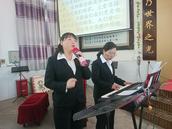 主持人邓姊妹带领大家又一次唱起了《生命江河》这首赞美诗歌:“一个荣耀的复活,一首生命的凯歌;有耶稣的受难,就必有五旬节;震醒了多少灵魂,更新了多少生命;我们走出灰心软弱,心头重新火热……”