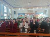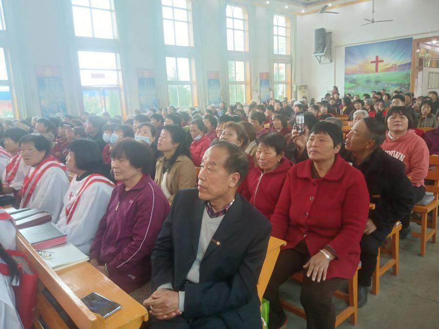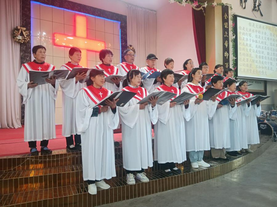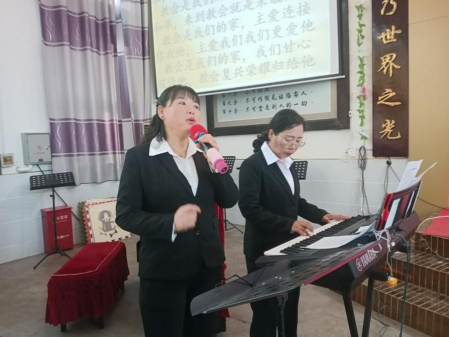 陕西宝鸡市扶风县基督教会春季培灵聚会第三天早晨,参加聚会的姊妹弟兄在早祷后用过早餐都已早早回到主堂。眼前主堂背景墙上的红色十字架,爱意浓浓地朝大家微笑着。两位姊妹这时候开始了为大家教唱赞美诗歌,今天学唱的是《教会是我们的家》。这首诗歌虽然大家早已会唱,但当旋律响起再次学唱时,还是不由自已的热泪盈眶。“教会是我们的家,复兴靠大家,我们不爱她谁爱她。教会是我们的家,家主是耶和华,来到教会就是来敬拜祂……”柔美乐曲如春风,轻轻飘荡在上空;句句歌词如我心,我们都爱耶和华;今来教会敬拜祂,为的跟祂走天涯。