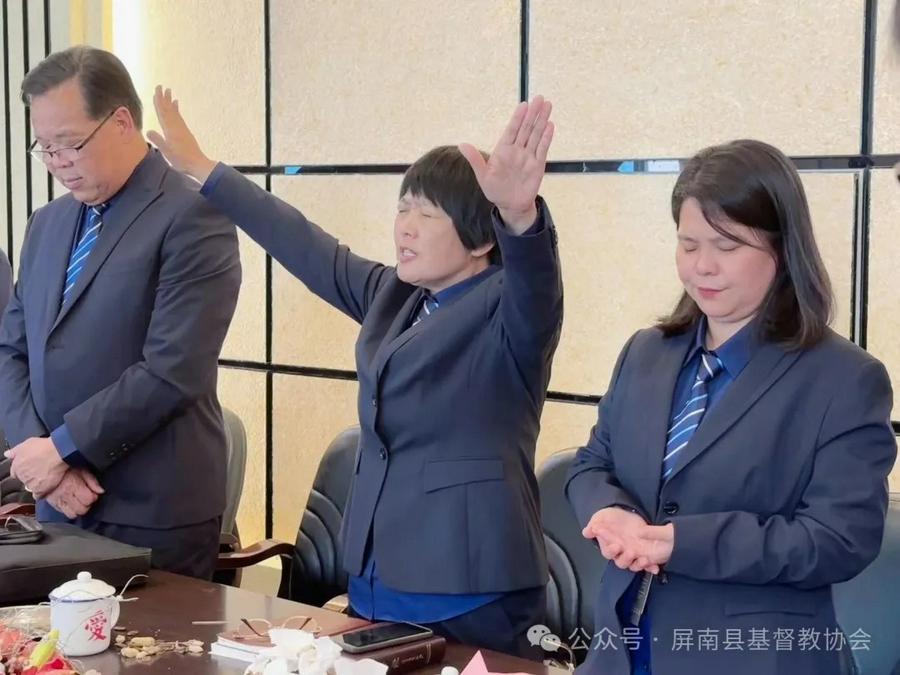 4月22日,来自全县20位教牧同工参加了在屏南城东基督教堂召开的“屏南县基督教两会年第十三届敬牧节感恩座谈会”。座谈会由常务副会长张金莺牧师主持,常务副主席韦信芳牧师作会前开始祷告。
