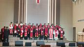 一大早,在桐城镇中社村教会所在地巷口,弟兄姊妹身披“欢迎回到神的家”绶带早已在热情迎候;教堂大门口,乐队的弟兄姊妹列队整齐,身着制服高奏圣乐,声声入耳,直上云霄。