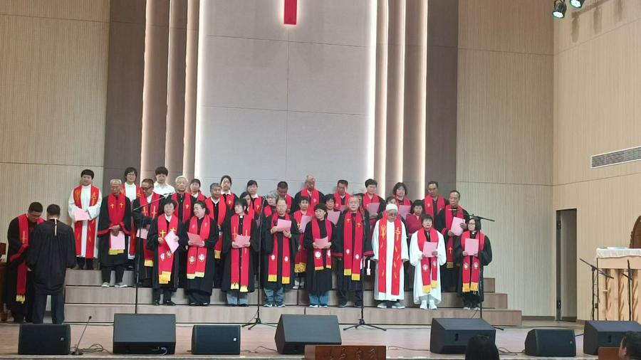 此后,三十多位牧师、长老代表共同登台为闻喜教堂献上祝福祷告。