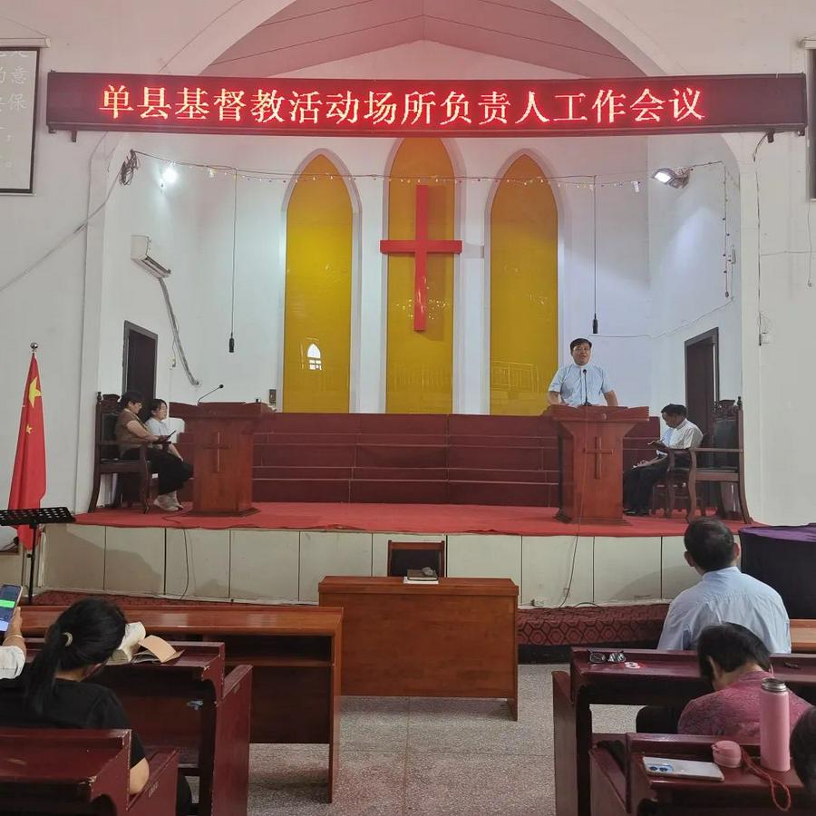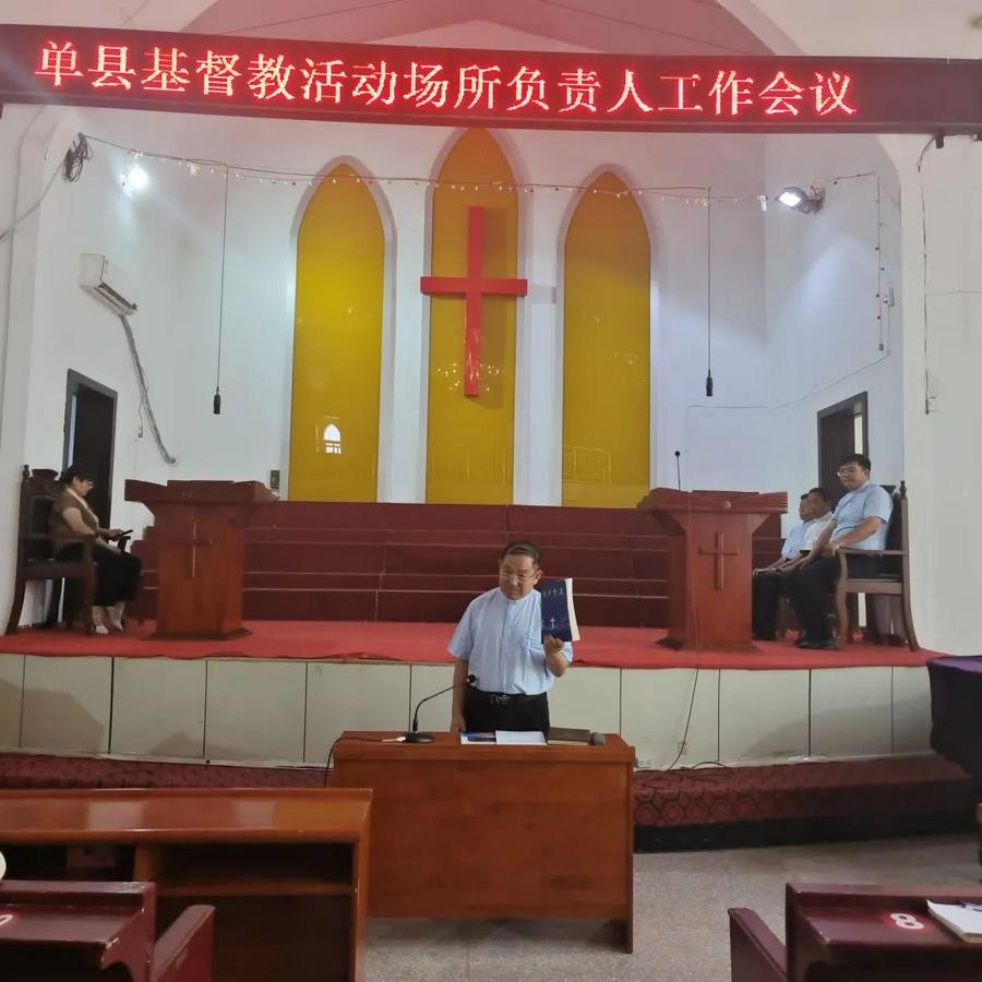 6月18日,山东省菏泽市单县基督教两会在县中心基督教堂举行全县基督教教会负责人会议。由县基督教两会副主任、副会长曹秀兰牧师主持,秘书长张蒙恩牧师证道。