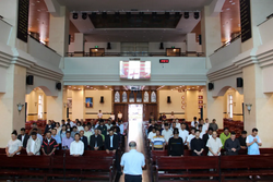 云南省基督教协会副会长、三一国际礼拜堂主任邵立良牧师对培训班学员的到来表示热烈欢迎。同时邀请培训班的牧者同工们观看三一国际礼拜堂的专题片。