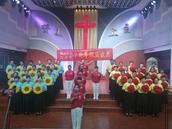 上午8:30,曙光教会建堂七周年殿庆崇拜聚会,在会众祈祷及主持人陈剑弟兄代祷后拉开了序幕。首先是曙光教会的迦南、约书亚诗班联合登台献唱赞美。只见诗班弟兄姊妹身着白色圣服,依阶依次站在主台前。在优美钢琴音乐伴奏下,在圣乐老师和白雪姊妹的分别指挥下,诗班弟兄姊妹满怀感恩之情豪迈喜乐地献唱了《荣耀的殿》《哈利路亚》两首赞美诗歌。
