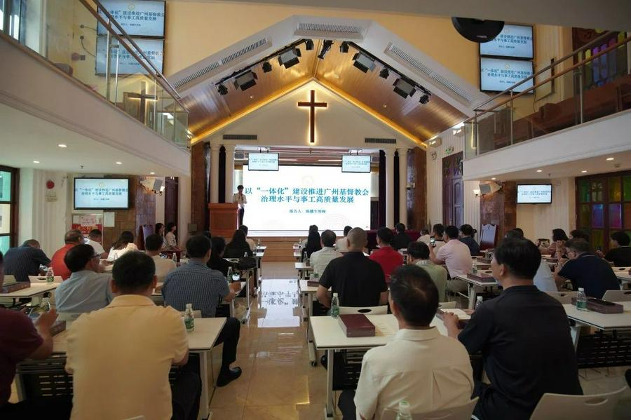 2024年7月8日至12日,全国基督教两会在穗举办中国基督教部分主要教堂主任牧师“从严治教”培训班,并在广州市基督教东山堂开展实地教学。广州市基督教协会会长、广州市基督教东山堂主任牧师陈穗生牧师以《教会管理实践:以广州为例》为题进行分享,重点围绕市两会近年推进全面从严治教,加强建章立制,实行“一体化”运行机制以及以堂带点、堂会联动发展策略,统筹人财事物一体化、规范化管理,整合资源等方面所取得实践成效进行了深入浅出的阐述,以及分享了“一体化”建设有效促进广州基督教会规范管理的相关经验。