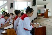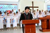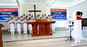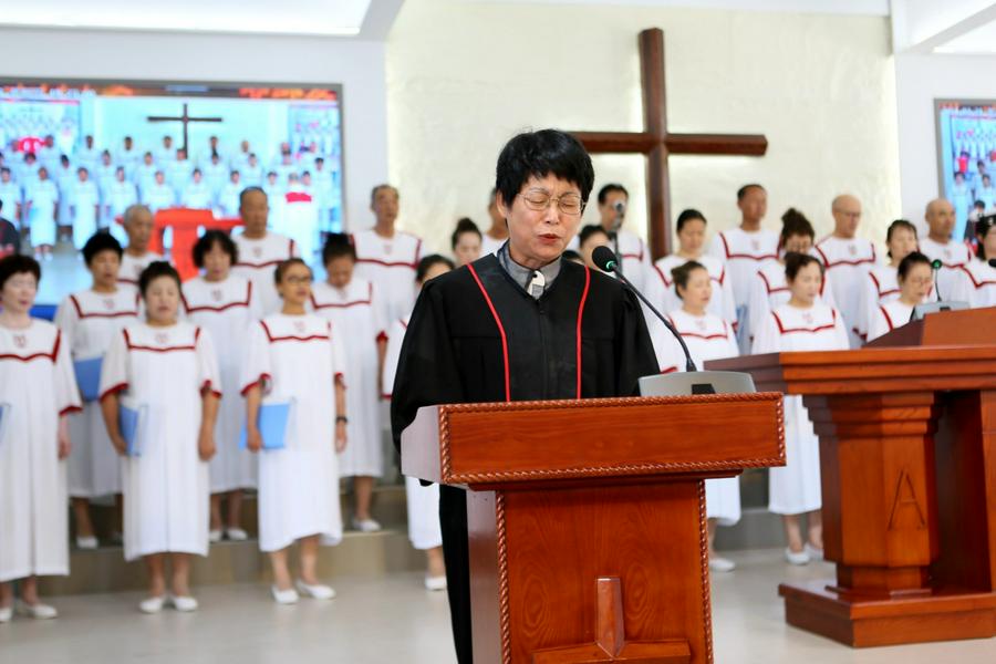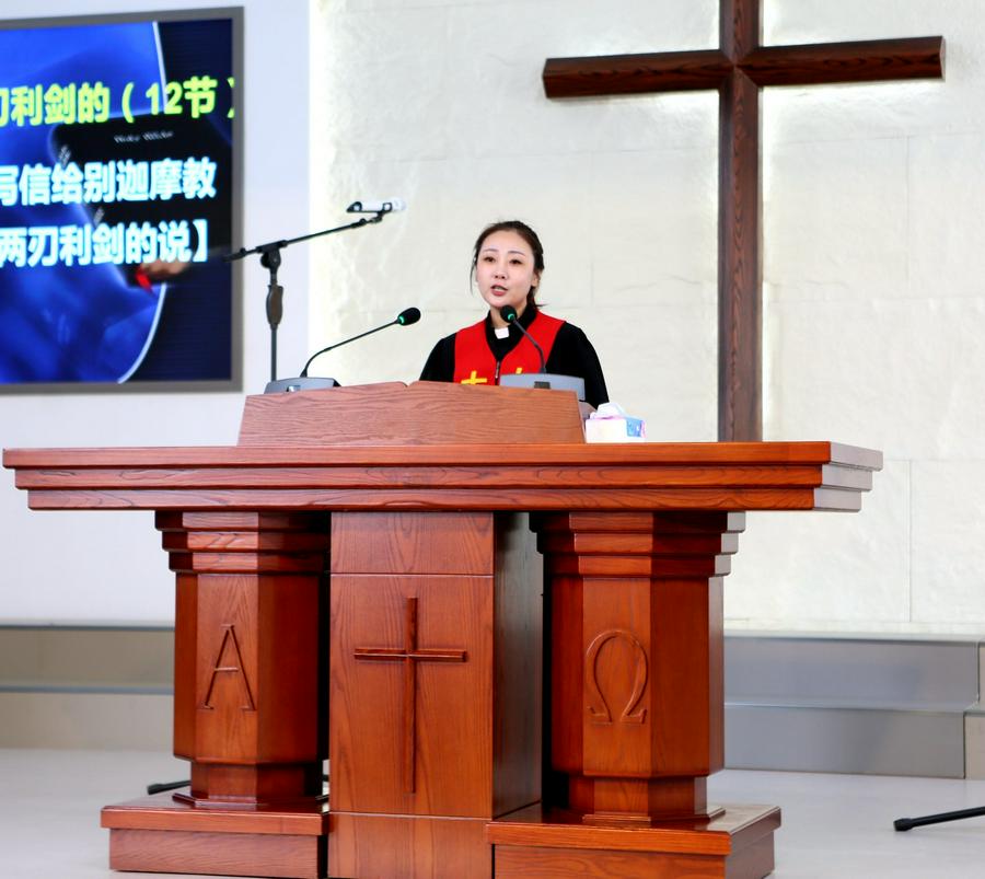 今天主日的清晨,笔者来到教堂,看到爱主的信徒们从四面八方早早来到圣殿聚会,跟随诗班同工读经、赞美。崇拜开始,教会的平安诗班、喜乐诗班先后献诗。高雪牧师带领会众诵读圣经启示录2章12至17节的经文,以“圣洁生活的光辉——别迦摩教会”为题为主证道。
