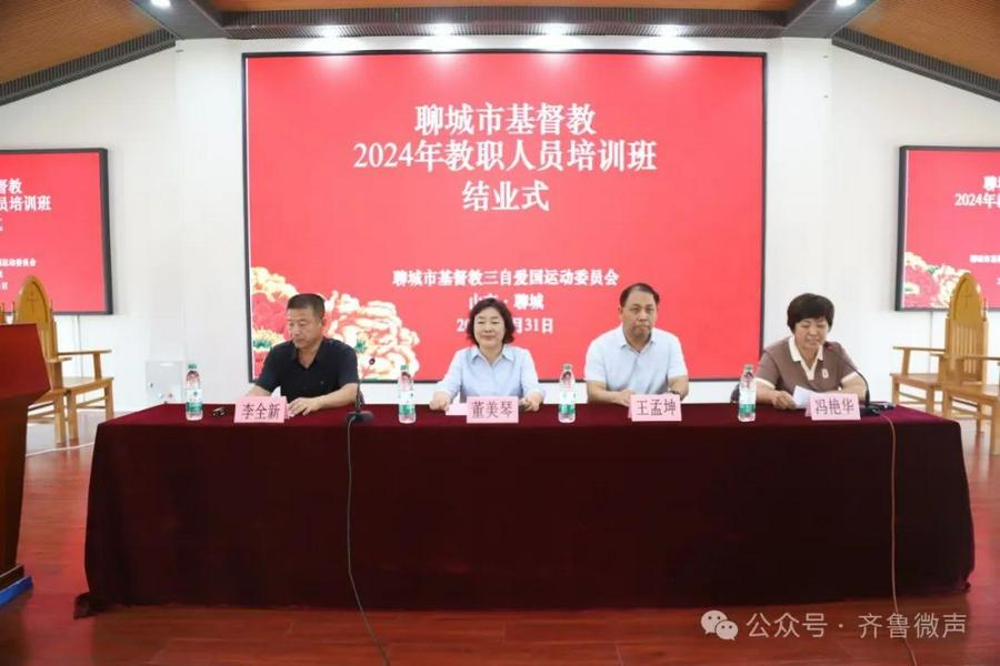 为认真学习贯彻习近平总书记关于宗教工作的重要论述,深入推进基督教中国化聊城实践,7月29日-31日,山东省聊城市基督教三自爱国运动委员会在聊城市双街基督教堂举办“聊城市基督教2024年教职人员培训班”。市委统战部(市民族宗教局)宗教工作科科长、四级调研员刘杰出席开班式并讲话,省基督教三自爱国运动委员会主任董美琴牧师、省基督教协会副会长王孟坤牧师分别出席结业式、开班式并讲话,全市近100位教职人员参加培训。
