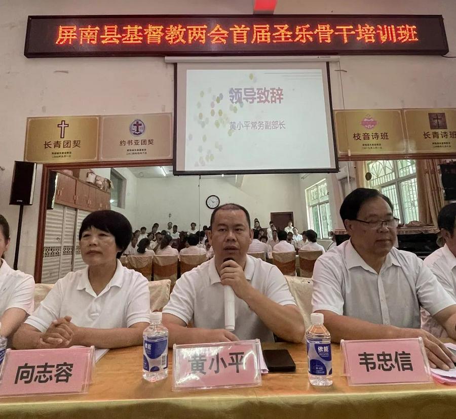 8月8日至10日,福建省宁德市屏南县基督教两会首届圣乐骨干培训班在屏南城东基督教堂举办。来自屏南教会各诗班骨干60多人参加培训。开班式由县基督教圣乐事工组主任黄贵平同工主持并致欢迎词。屏南县统战部常务副部长黄小平受邀出席开班式并发表讲话。