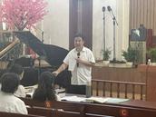 接着,县基督教协会会长韦忠信教士介绍了办培训班的目的是为了满足基层教会音乐人才紧缺的需求,本次培训班的特点是邀请了本地优秀的音乐师资队伍,为圣乐培训提供质量保证,并勉励学员们要珍惜难得的学习机会,希望大家能够全身心投入,做到人到心也到,把圣乐的技巧和艺术掌握好,为屏南教会的圣乐发展做贡献。