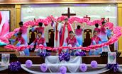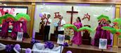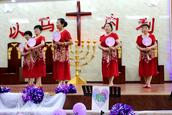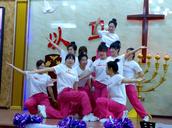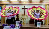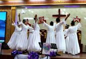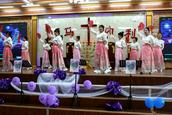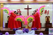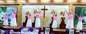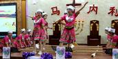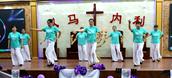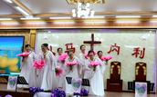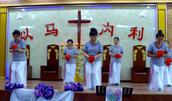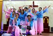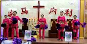 “最美的献给你,最美的歌儿唱给你,最美的花儿献给你,最真的爱情献给你,我们敬拜赞美你,最美的旋律献给你,最美的舞蹈献给你。”歌舞联谊会在胜利教堂大型开场舞《天上的敬拜》后拉开序幕。