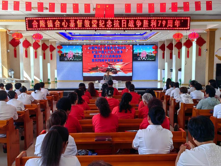 2024年9月3日是中国人民抗日战争胜利79周年纪念日。在这个具有重大历史意义的日子里,吉林省长春市农安县合隆镇合心教会在教堂举行了“纪念中国人民抗日战争暨世界反法西斯战争胜利79周年和平祈祷会”,以此来缅怀在抗日战争中英勇献身的英烈,弘扬基督教爱国爱教的爱国主义精神,同时表达对和平的珍视和对未来的美好愿景。