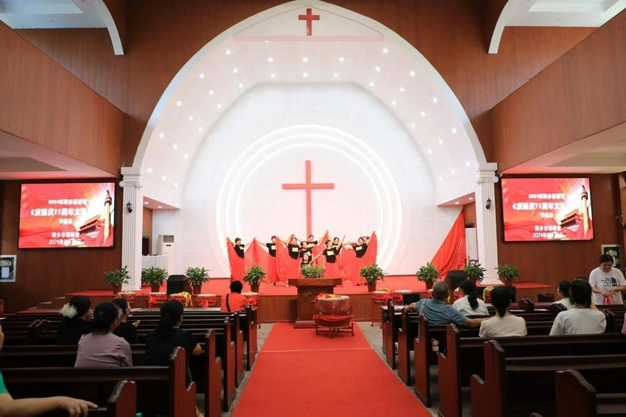 “万众一心奔向前方,中华儿女百炼成钢,创造奇迹初心不忘,这就是复兴的力量”。2024年8月31日,江西省萍乡市基督教三自爱国运动委员会在萍乡耶稣堂,举行庆祝中华人民共和国成立75周年文艺晚会。