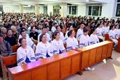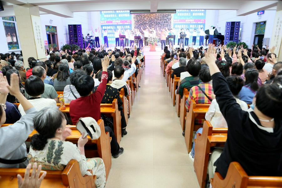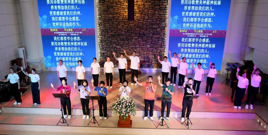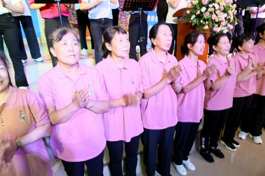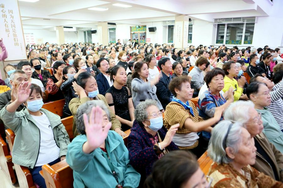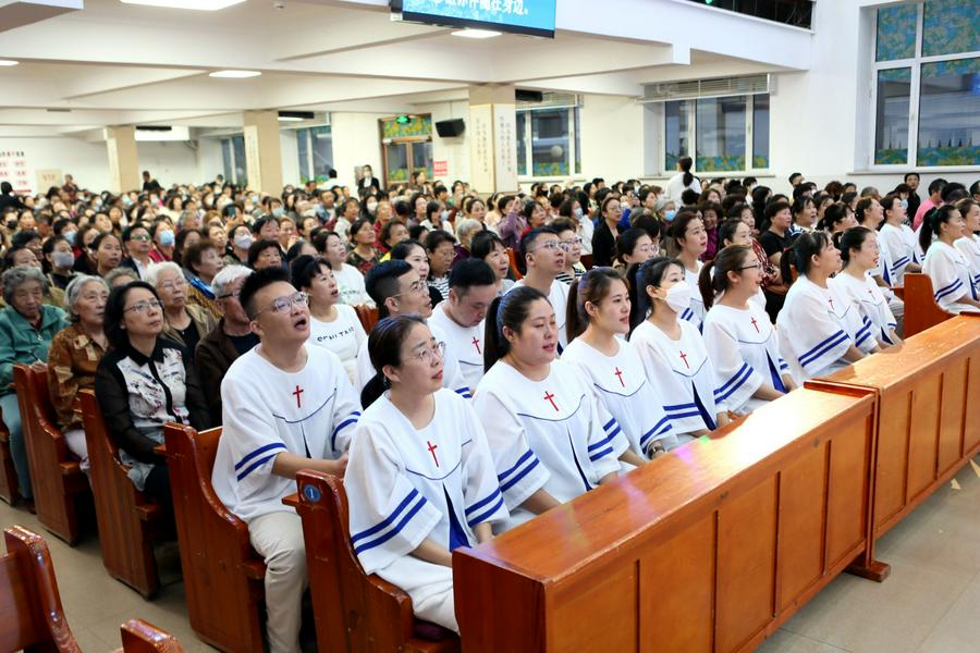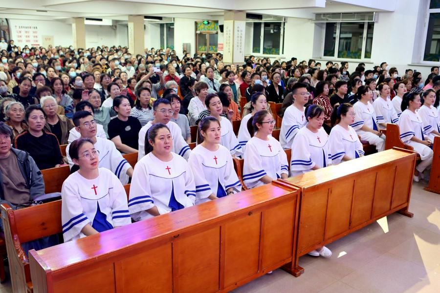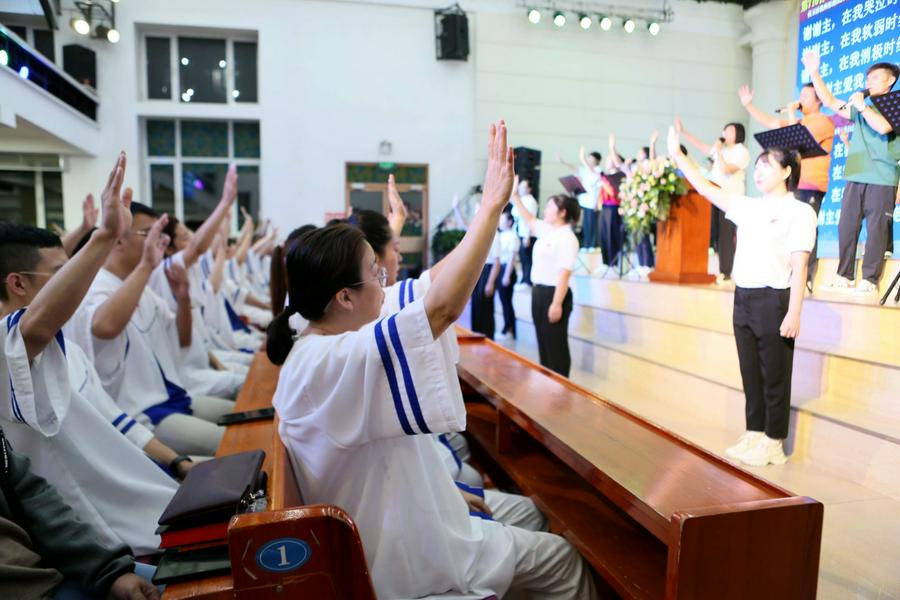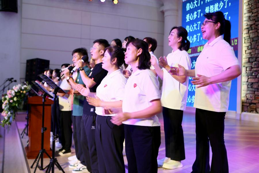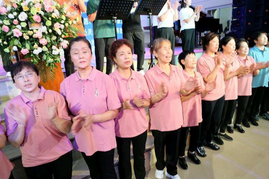 赞美会开始,侯玉洁牧师带领教职人员及年轻的同工20多人同台赞美,她为此次活动创作了有关的诗歌22首,与会众一起敬拜赞美。这种跨代的合作、“接地气”的诗歌,不仅展现了信仰的活力,也象征着教会的传承和更新。