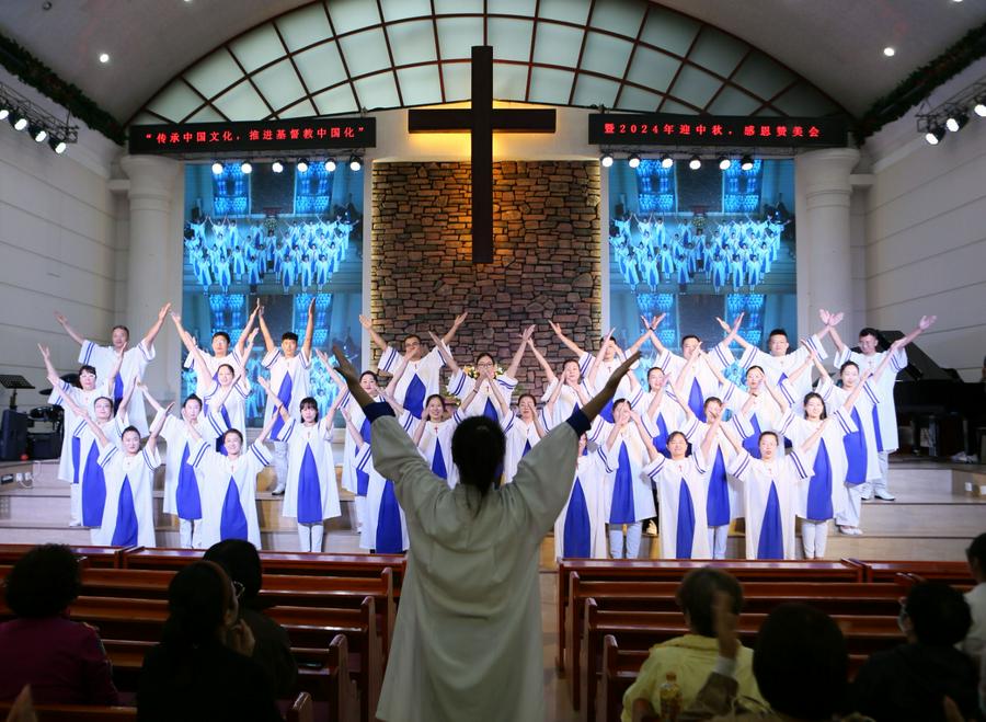 这是辽宁省基督教协会会长、营口市基督教两会主席、会长侯玉洁牧师为中秋节创作的赞美诗歌。2024年9月15日主日傍晚、中国传统节日中秋佳节前夕,辽宁省营口市基督教堂举行了“传承中国文化,推进基督教中国化暨2024年迎中秋感恩赞美会”,旨在通过这一活动,展现基督教与中国文化的和谐共存,以及基督教在中国本土化进程中的积极努力,彰显神佑中华所赐的恩典。