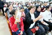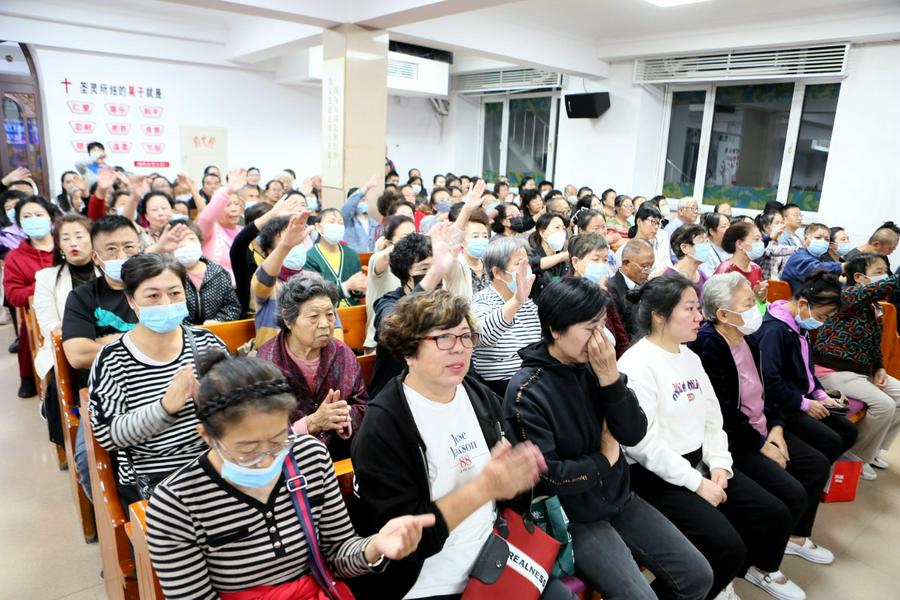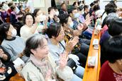 “哈利路亚心情舒畅,哈利路亚,秋日暖阳。哈利路亚,珍惜当下,共度美好时光。”在这美好喜乐的时刻、在这高声歌唱赞美的时刻、在这传统团圆节日的时刻,侯玉洁牧师和信众一起赞美追随恩主的历程、追忆属灵前辈为福传所做出的贡献。牧师饱含深情、和风细雨的劝勉、鼓励、祷告、分享见证,当见证到感动的时刻,许多的信徒们都流下了热泪。台上、台下大家一起举手赞美,同声歌唱,信徒互相彼此祝福,好一派中秋祥和、温馨、彼此相爱的气氛。