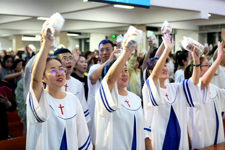 今天营口教堂的感恩赞美会不仅是一场精神的盛宴,也是一次物质的分享。教堂为信众精心准备了月饼,不仅是中秋节的传统美食,更是对每一位信徒的深情厚意。每一位参会的信徒都收到了五块月饼,这五块小小的月饼,承载着教堂和教牧同工对他们的大大的爱与祝福。